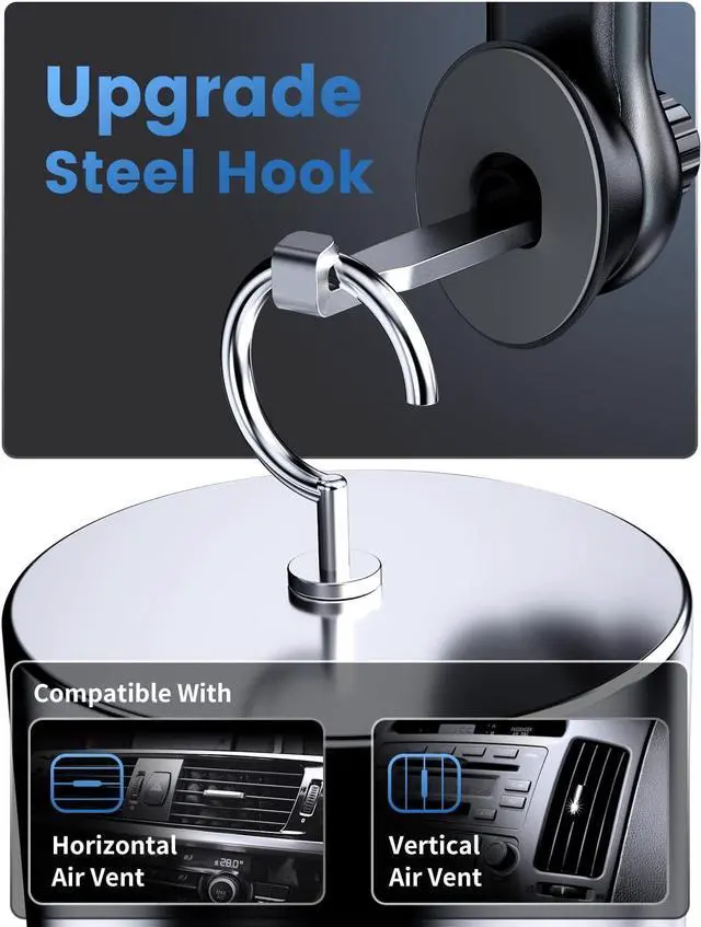 Upgraded Longer Hook ClipNew 36mm hooks clip can fit more kinds of air vent bladesmeanwhile the metal hook is more solid and durable.