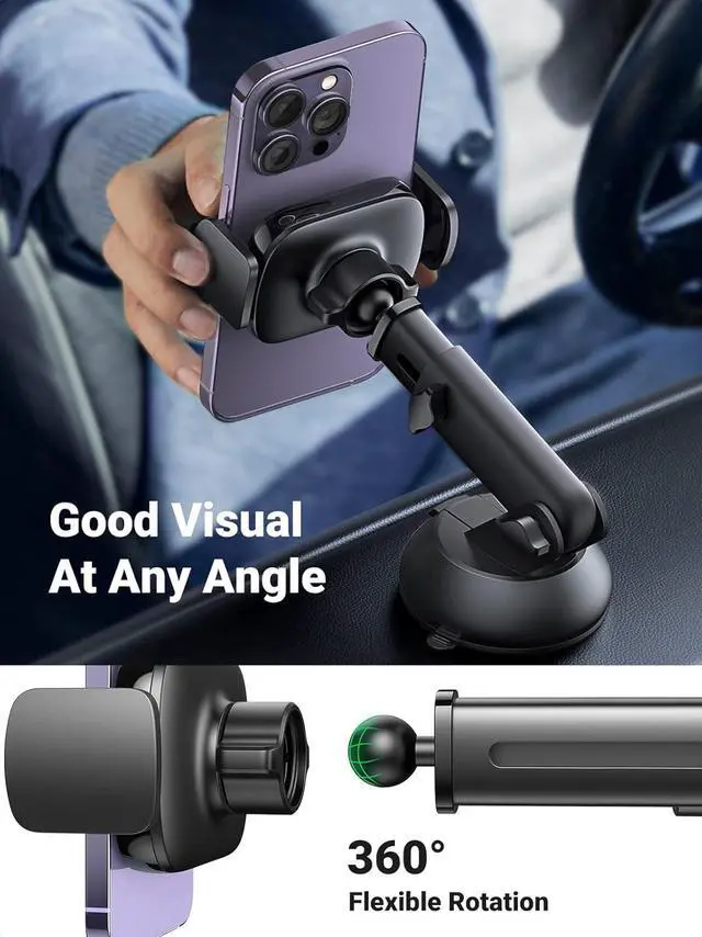 Easy to Access: This Windshield Car Phone Mount cradle features 360 degree ball head rotation and a telescopic 220° rotation arm that extends from 14 cm to 19 cm that allows a comfortable viewing angle for vehicle navigation and hands-free phone calls
