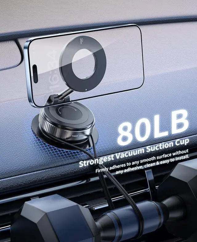 Dual Axis Adjustment & 360 ° Rotation - This vacuum suction cup magnetic phone holder features a unique dual axis folding metal arm that can rotate both 360 ° horizontally and 210 ° vertically, making it easy to adjust any angle to meet your needs. Its unique folding design makes it unbelievably small in size. After 30000+ durability tests, it ensures stability and reliability.