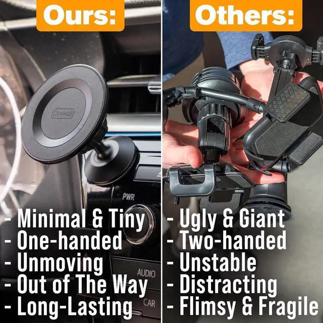 SLEEK MADE SIMPLE - The MagMount is smaller than most car mounts and blends in easily to your dashboard with the sleek metal design, making it easy to add to any car dashboard. The MagMount sticks best to perfectly flat, shiny pieces of plastic in your car.