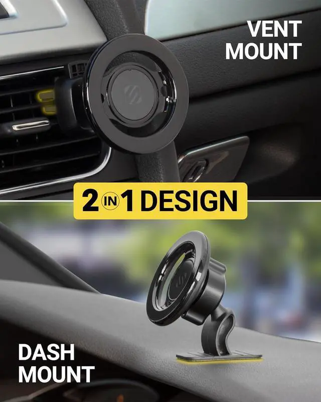 Buy With Confidence: Our 2-in-1 MagSafe phone mount for car includes a MagicMount magnetic mount head, adhesive dash base, vent clip, MagicRing adapter, and cleaning wipe and is backed by Scosche's Lifetime Tech support and 3-Year Limited Warranty