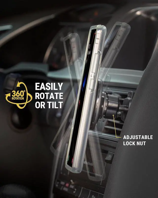 Optimal Viewing: Find the ideal viewing angle for GPS or hands-free calls with our adjustable phone stand. Secure this mount to your dash or clip it to your car air vent, the 360-degree rotation of this magnetic phone holder ensures your screen is always right where you need it
