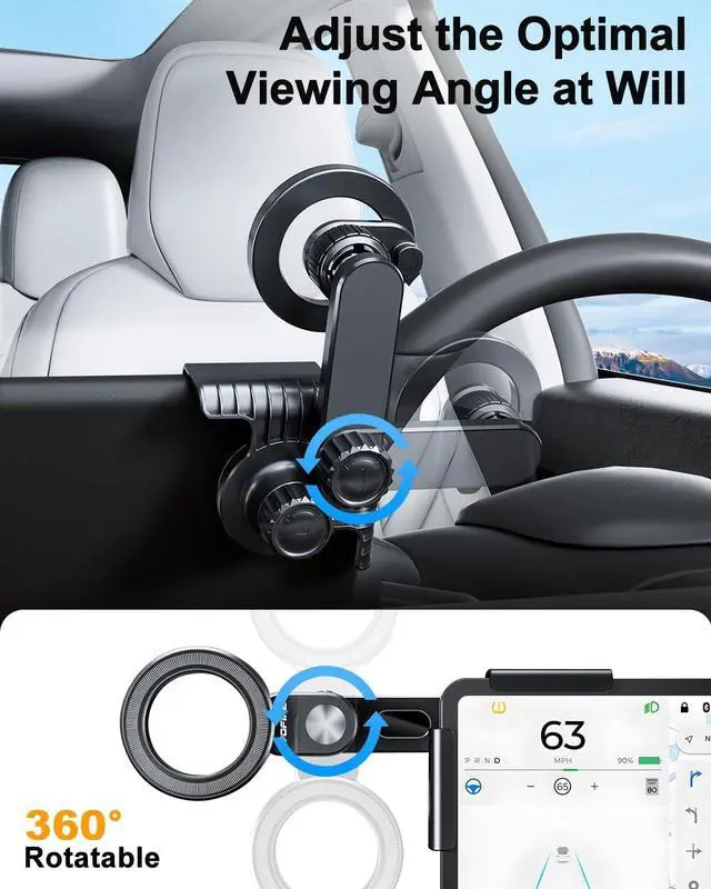 Smart Viewing & Charging 360° ball-joint adjustability lets you position your phone for optimal Tesla touchscreen access.