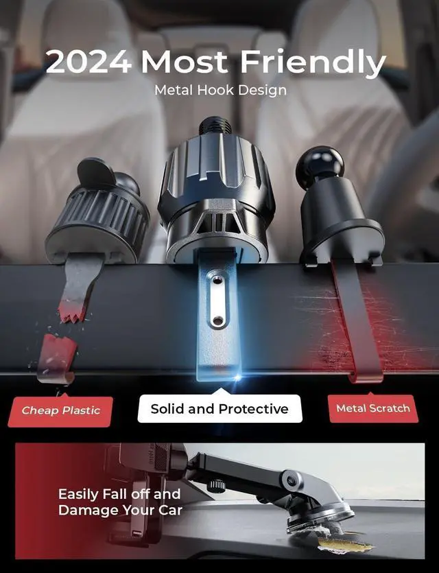 [Durable and Caring] Crafted with a protective plastic exterior and a resilient metal core, LISEN newest car phone holder vent's hook is designed to be durable without compromising on care. It's gentle on your car's air vent while standing up to the test of time, ensuring a long-lasting and reliable hold. It will never scratch your air vent like any others do.