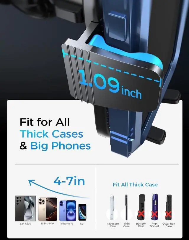[Wide Compatibility] The LISEN 2024 Newest Phone Mount for Car Vent is a versatile addition to your vehicle, designed to accommodate a broad range of smartphones, spanning 4 to 7 inches in size. It's fully compatible with the latest iPhone models, including the iPhone 15, iPhone 14, iPhone 13, and iPhone 12 Series, as well as Samsung Galaxy S24 models, and many more. This universal car vent phone mount ensures a seamless fit for your mobile tech, keeping you connected on the go.