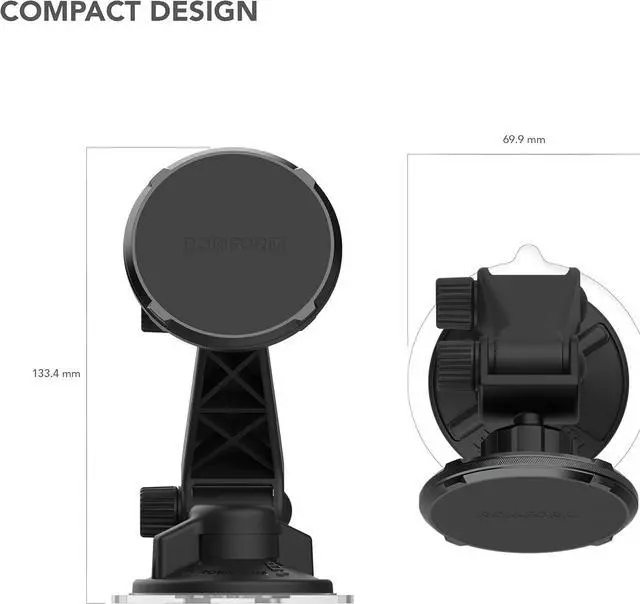 WINDSCREEN MOUNT CONSTRUCTION - Built with powerful suction cup base, super grip face, reinforced polycarbonate and the highest quality N52 neodymium magnets available, this mount is designed to hold your phone securely without vibrating on the road.
