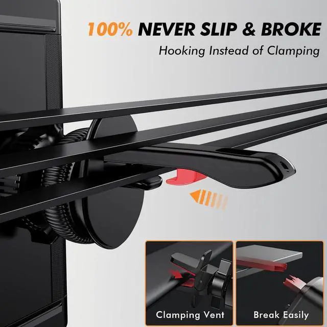Solid Not Shake: Upgrade spiral telescopic latch, can lock the air outlet blade tightly, not shake not shake not sag, compared to the old version of the straight insert clip, bite type clip arm and telescopic latch, firmly clamped not shake
