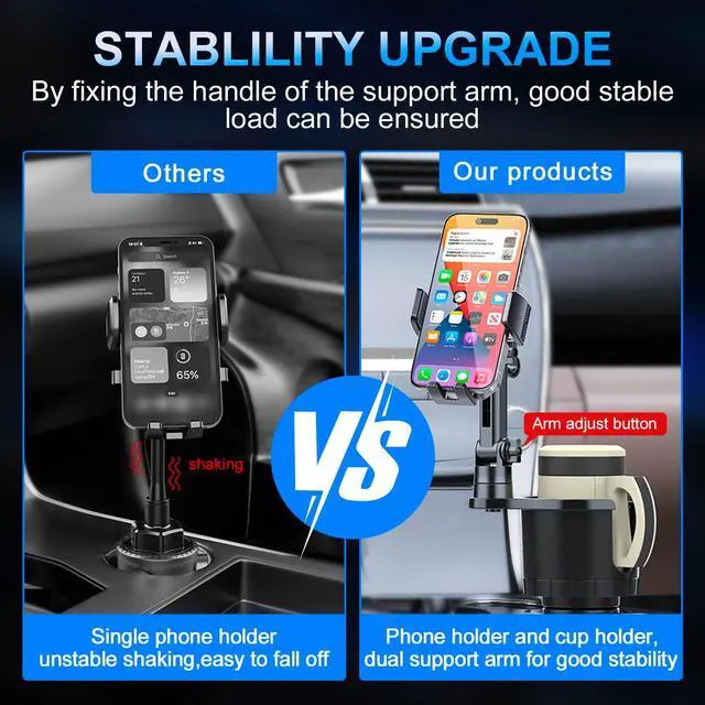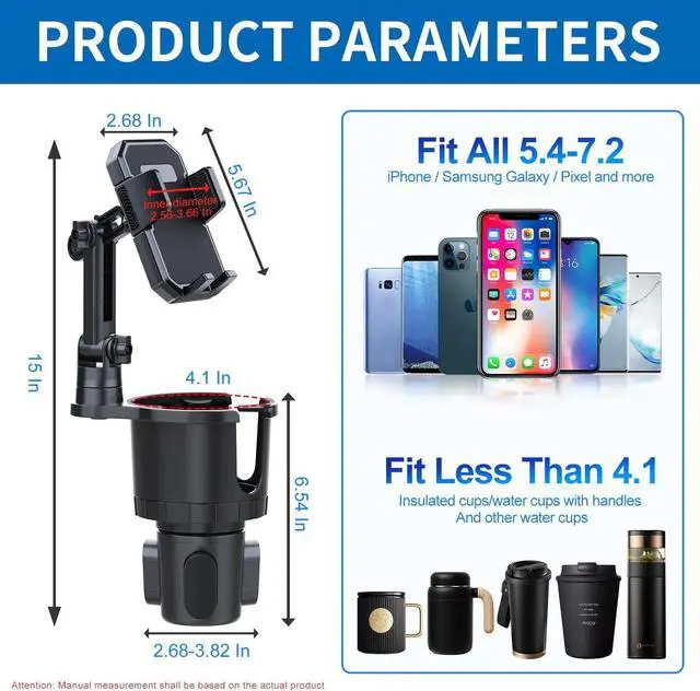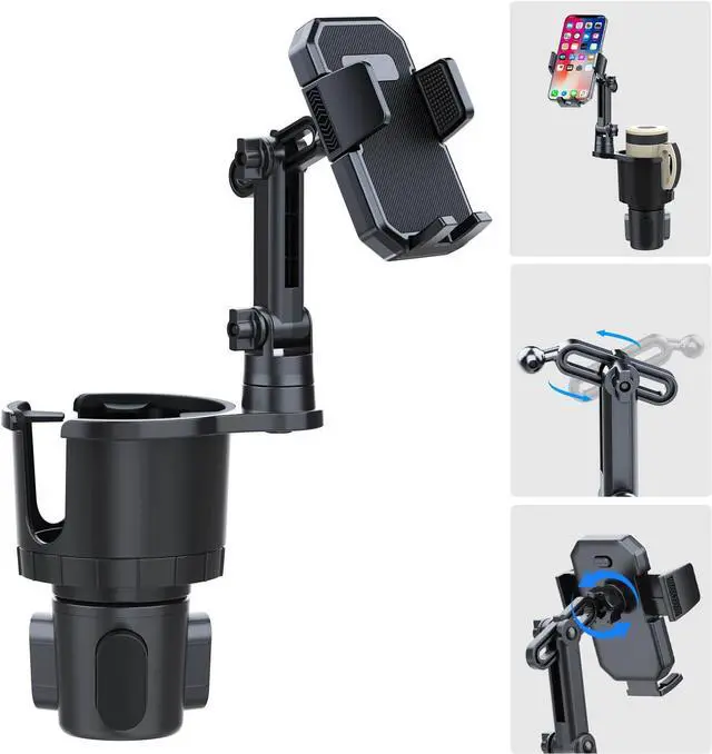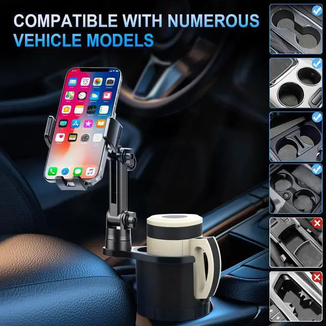 [cup phone holder for car] The car phone holder mount is perfect for smartphones up to 7 and thick phone cases, compatible with iPhone 14 Pro Max / 14 Plus / 14/ 13 / 12/ X/ Xs/ 8 plus/ 8/ 7 plus/ 7/ 6s plus Galaxy S10/ S10e/ S9/ S8 /Sony, LG, etc. The carSimply press the button on the car phone holder mount to hold your phone tightly. phone mount is exceptionally sturdy to hold your phone tightly.