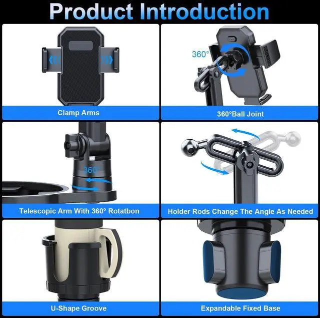 [Adjustable phone mount for car] The latest design of car cell phone cup holder adopts hollow and long neck design, which can maximize the use of space in the car. It offers 360-degree rotation and a flexible arm that allows you to place your phone in the best possible viewing angle without obstructing your line of sight.
