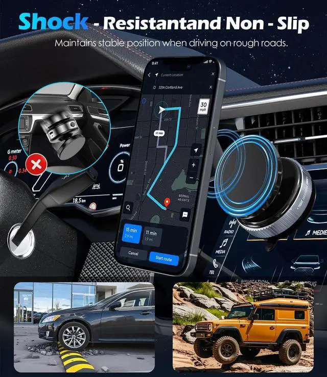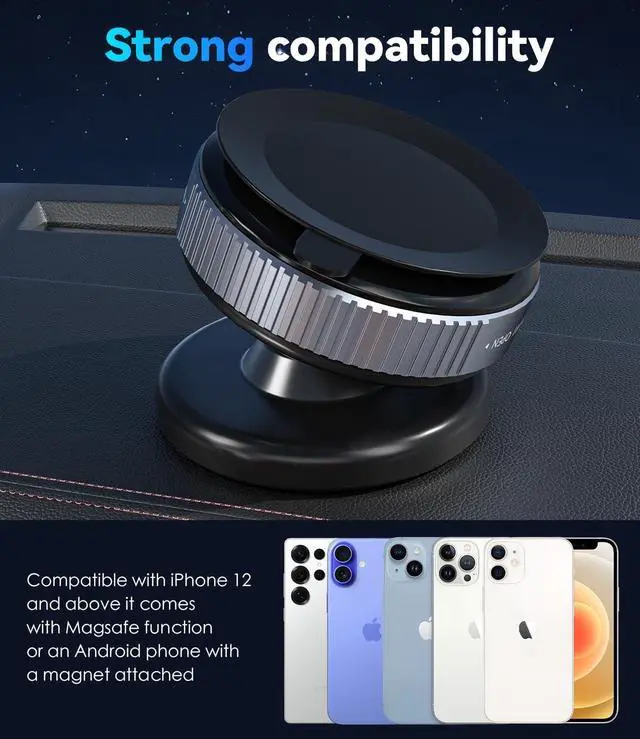 Powerful Magnetic Force, Stable SupportEquipped with N52 strong magnets, providing up to 1000 GF of magnetic force, it can safely and firmly fix the phone, and it can remain stable even after bumps, sharp turns or sudden braking, ensuring durability and reliability, which is an ideal choice for driving