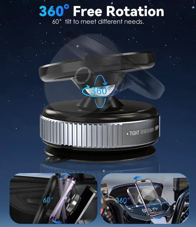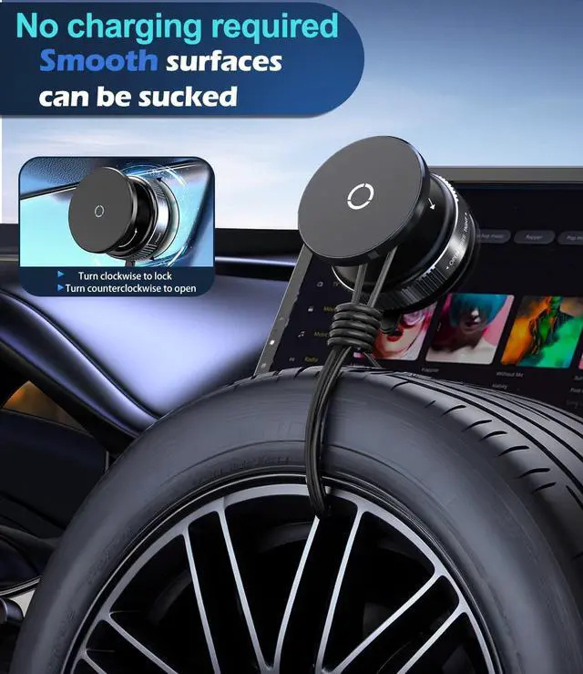 Innovative Suction Cup Design, Simple InstallationAdopting upgraded vacuum suction cup design, no need to charge, just gently rotate to generate strong vacuum suction, firmly adsorbed on smooth surfaces such as car windshield, central screen, glass, marble, etc. It can be easily removed by twisting in the opposite direction, leaving no trace, convenient to use and environmentally friendly