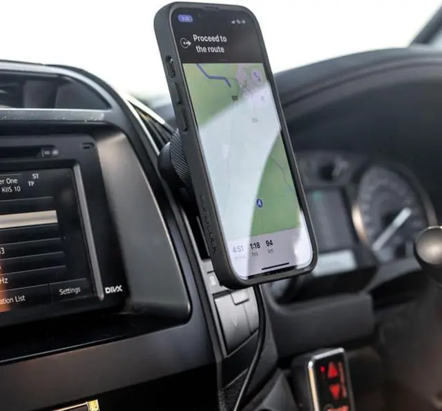 The clever hook design firmly holds the mount to a variety of car vents, while still allowing you to operate the open and close function.