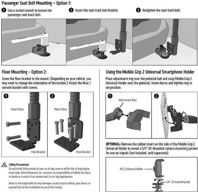 ARKON Mounts Seat Rail Floor Car Truck Mount with 15-Inch Gooseneck for Smartphones - Retail Packaging