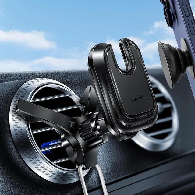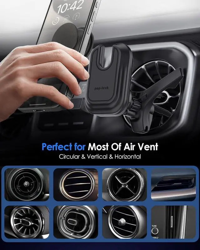 [Secure & Stable Hold]: Unique ultra-stable clip hooks onto vent and locks firmly in place while there is no extra gap between airbag layer of the mount and socket grip, securely hold your smartphone. You don't have to worry about falling of when driving on bumpy road. You could anytime enjoy music, movies and portrait / landscape mode gps navigation, enioying handsfree driving.