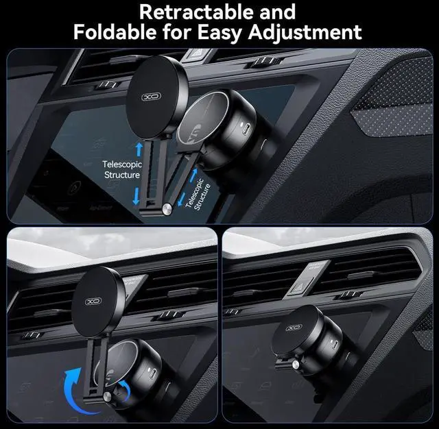 Adjustable and Telescopic Design Equipped with an updated flexible spindle telescopic structure design to support a variety of viewing angles. Compared with ordinary car phone holders, this provides more viewing options and uses a vacuum suction cup design, so you don't have to worry about glue staining the car. Just have fun driving.