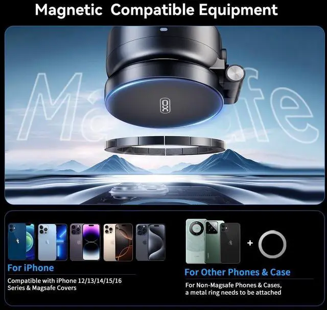 Compatibility Our vacuum-sucking phone holders are designed to fit most smartphones. Compatible with iPhone 16/16 Pro, iPhone 15/15 Pro, 14/14 Pro, iPhone 13/13 Pro, iPhone 12/12 Pro. Other non-magnetic phones can be fitted with a magnetic safety case, or glued to the back of the phone using the metal rings we come with.