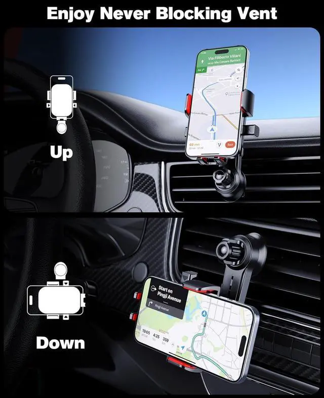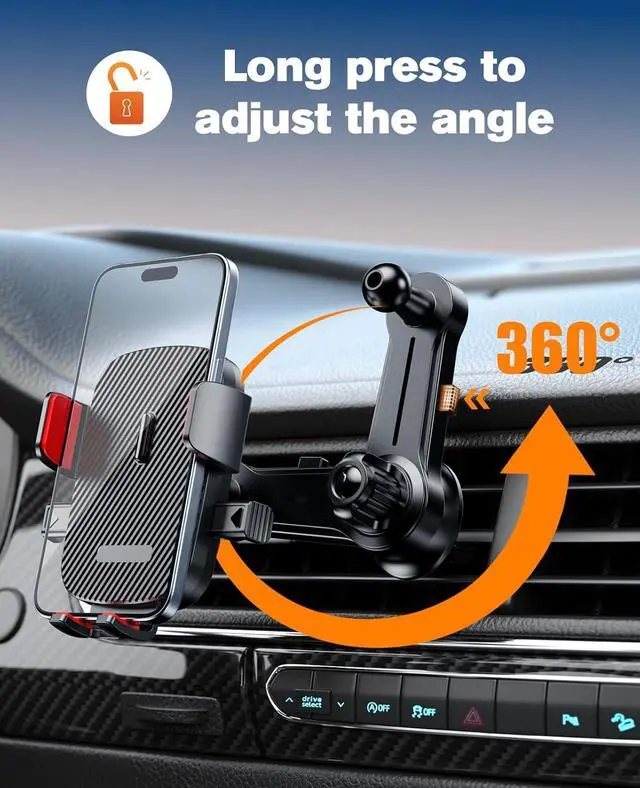 Vent Phone Holder]: This car vent phone holder is equipped with a 360° adjustable base and extra long extension arm, Never block the car vent to enjoy the comfort brought by air conditioning, It can also help you find the most suitable viewing angle for your phone, It is the best choice for your phone stand for car!