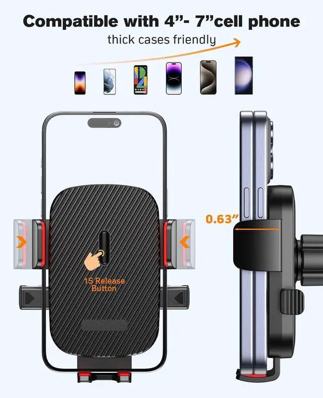 [Wide Compatibility]: NIYEVN phone holder car features adjustable feet and a thicker and wider clamp, making this phone mount car suitable for all ( 4.0 - 7.0 inch) Smartphones such as iPhone 16 Pro Max /16 Pro/16 Plus/16/iPhone 15 Pro Max /15 Pro/15 Plus/15/14 Pro Max/14 Pro /14 Plus/14/ /iPhone 13 Pro Max /iPhone 13 Pro/iPhone 13/iPhone 13 mini, for