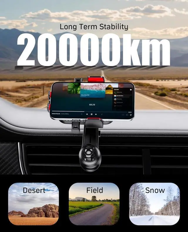 One-Second Clamping]: Simply put your phone into the NIYEVN Portable phone car holder and press the button in the middle of the holder, the car mount phone holder will clamp your smartphone in 1 second, press the buttons on both sides to release it in one click, super convenient