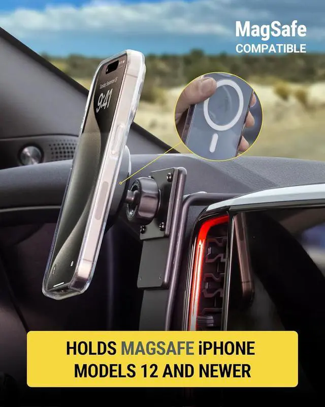 MagSafe Car Mount: Securely mount your MagSafe iPhone 16/15/14/13/12 Pro, Pro Max, Plus, Mini or any phone with a MagSafe case with the powerful rare-earth neodymium magnets in our car phone stand. To use the car mount with a tablet or iPad attach the included HD MagicRing