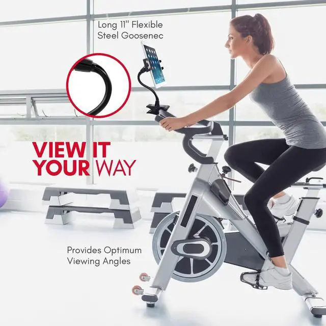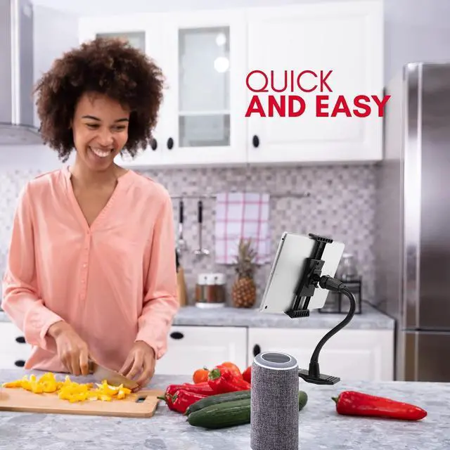 Macally Adjustable Gooseneck Tablet Holder & Phone Clip - Works with Phones & Tablets up to 8 - Flexible Phone Holder & Tablet Mount with Clip On Clamp for Desks up to 1.75 Thick (CLIPMOUNT),Black