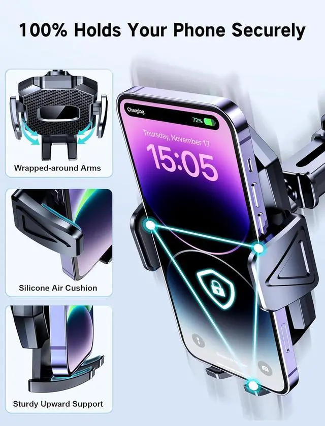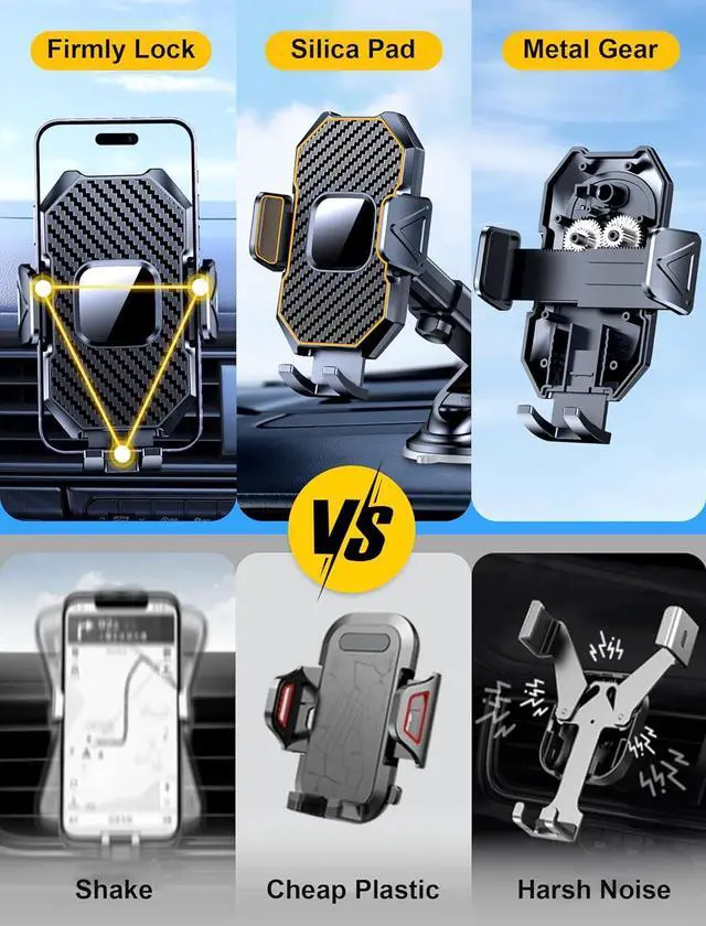 Excellent Quality of Workmanship: The cell phone holder car is made of high quality ABS+PC material, which are light and less prone to damage and breakage. After repeated tests and improvements in the laboratory, the durability of the bracket is 15-times higher than other products!
