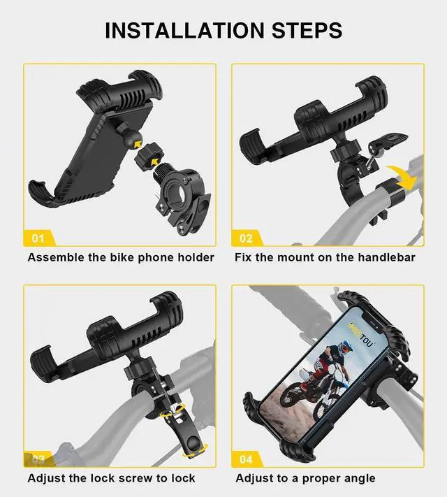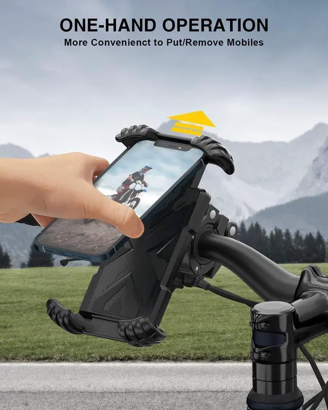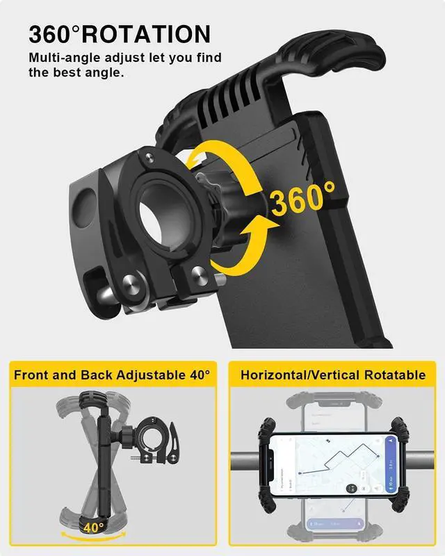 Shock-proof & Non-slipping: coming with silicone pads for handlebar and clamping claws, it makes the bike phone holder sturdy on the vehicles, and the smartphones stable on the phone mounts.