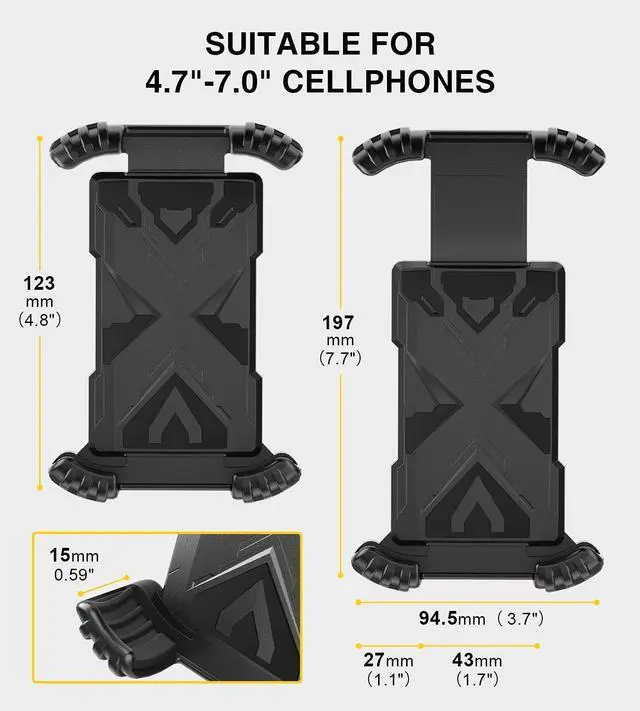 Wide Compatibility: the motorcycle phone holder is universally suitable for 4.7 - 7.0 inch cellphones.