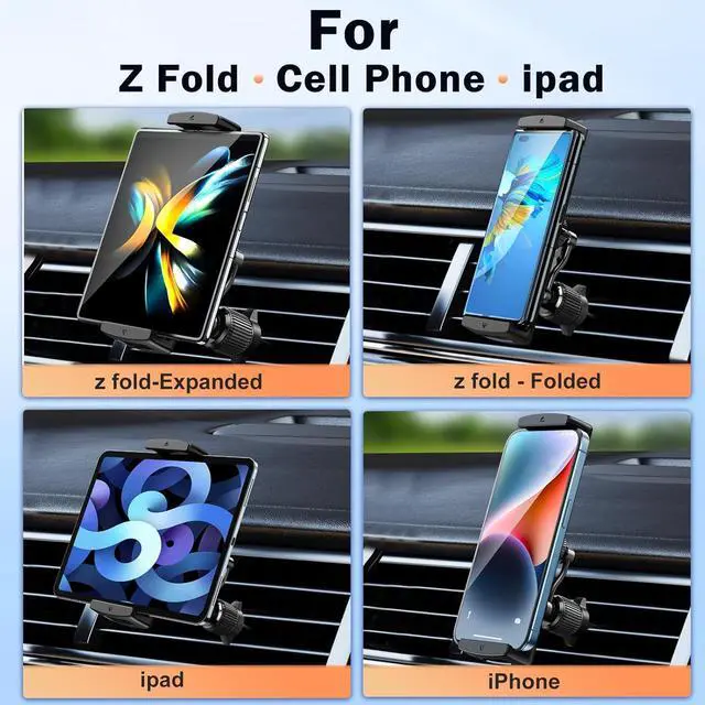 Unfolded And Folded Both Work Whether you have a large or small screen, this car mount holds your phone securely. It is compatible with folding screen phones like Samsung Z Fold 6, Z Fold 5, Z Fold 4, Z Fold 3, and Pixel Fold, and regular phones like iPhone 15 14, Samsung s23 s22, and tablets like iPad mini pro air can also be clamped