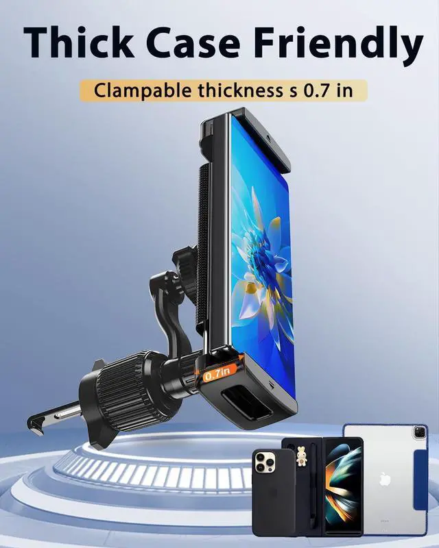 Friendly to thicker cases The clip of the car mount is 0.7 inches thick, which can accommodate thicker phone cases