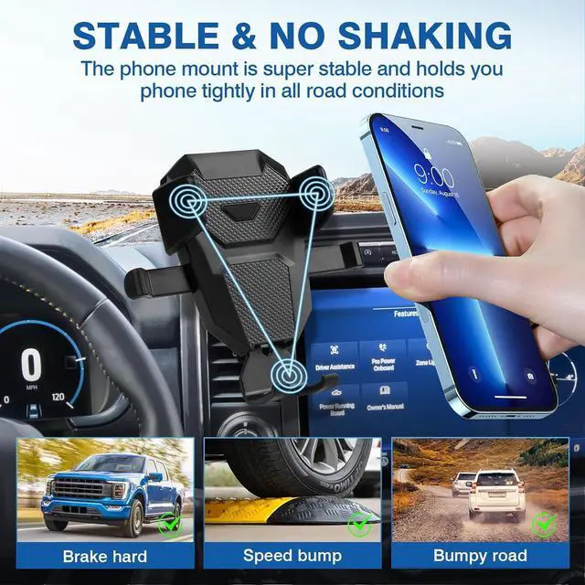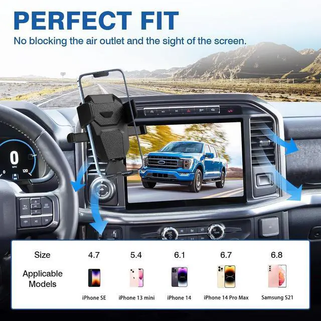 Suitable Vehicle: The phone holder is specially designed for 2021-2024 Ford F-150. Make your phone stay firm even on bump road, no block the air outlet and the sight of the screen.