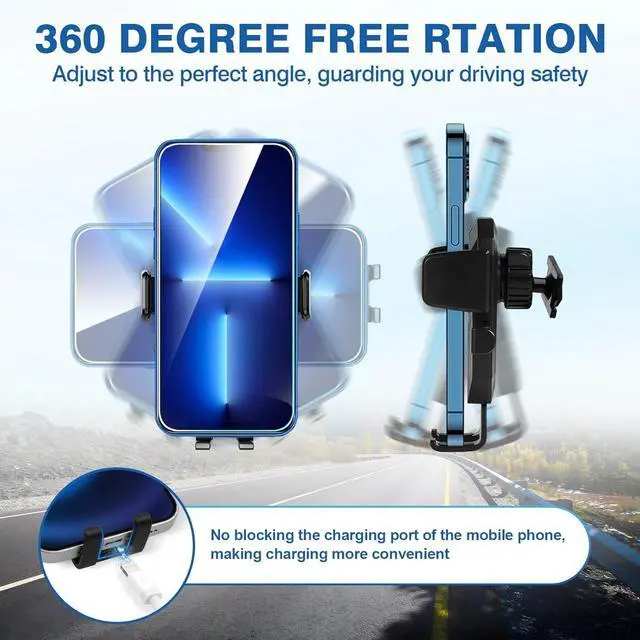 Protect Your Phone & Convenience: The phone mount is made of ABS material, scratch-resistant and wear-resistant, soft rubber pad inside the phone holder can protect your phone from being scratched during driving, protecting the phone effectively. And the phone holder does not block the charging port of the mobile phone, making charging more convenient.