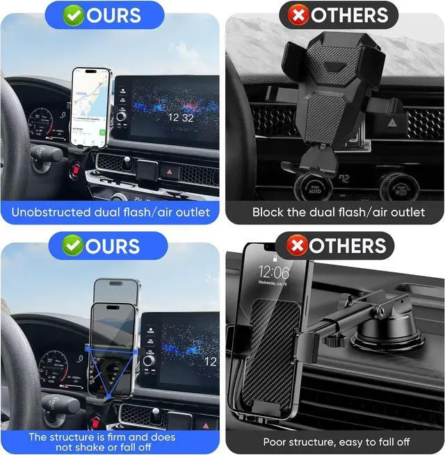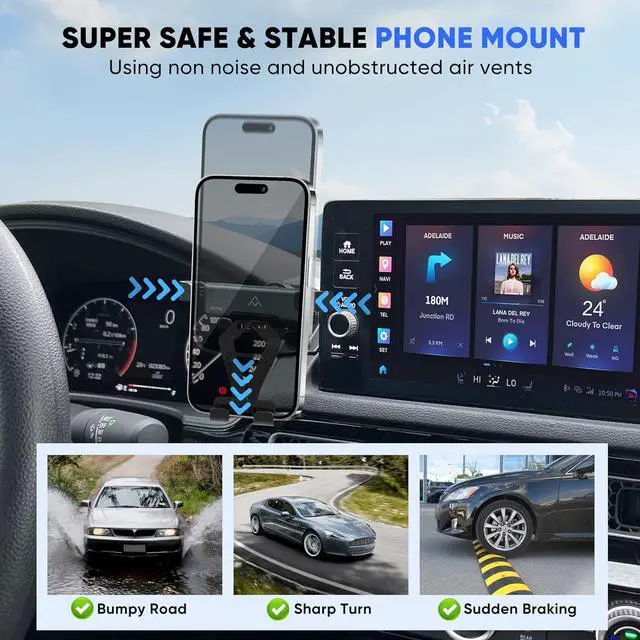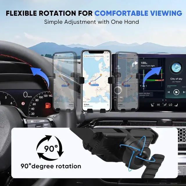 Fully Adjustable: The holder features a 90-degree rotation function, allowing you to adjust your phone to any angle for optimal viewing. The auto-lock design makes it easy to use: simply press your phone against the back button to clamp it, and press the sides to expand and release. A perfect addition to your 11th gen Civic accessories.