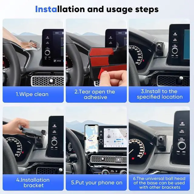 Easy Installation: Align the phone holder in the designated area next to the dashboard screen and attach it using the adhesive provided. Made from high-quality ABS material with soft rubber pads inside the clamps, it is safe, sturdy, and durable. A very practical accessory for Honda Civic owners.