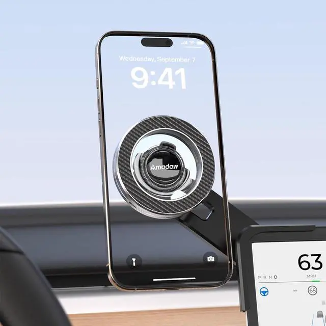 [360° Rotatable for Safe Driving]: Amadaw for Tesla phone holder model y enables you to adjust the viewing angle for an optimal driving experience. With a 360° rotating ball joint, you can seamlessly switch your phone between horizontal and vertical modes for clear sight
