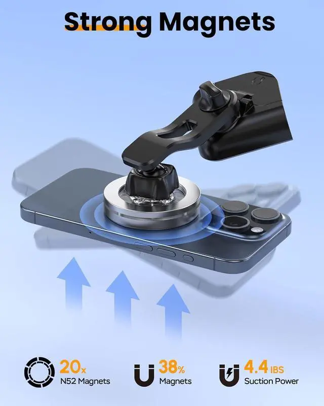 [Strong Magnets Lock Phone Firmly]: The Tesla model y phone mount provides unparalleled stability. The phone mount has built-in 20 N52 magnets, providing super strong suction power that can hold 4.4 lb (2kg) effortlessly. Enjoy your optimal magnetic balance journey with us