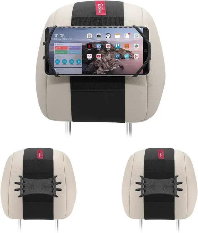 [Adjustable Holder] The velcro strap could be adjustable to fit different car headrests. It can be firmly fixed on the headrest and the hook and loop fit well, no worry about pull ing the hair of the front passenger.