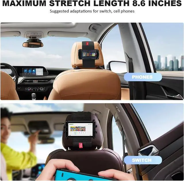 [Universal Fit] Universal car headrest phone mount holder is compatible with 3.5 -7 inch devices, cell phone, switch game machine and other devices that size fit. Compatible with iPhone, Samsung Galaxy Phones, Google, Nokia and Other Smartphones.