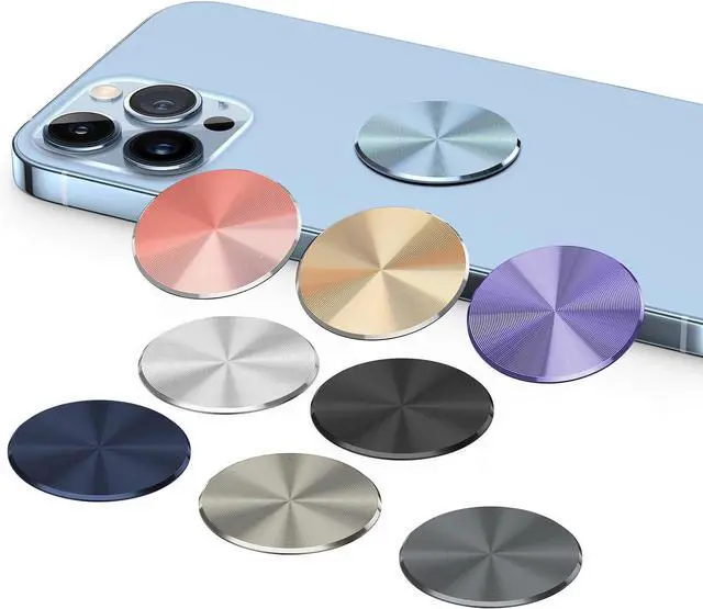 Phone size is: 1.26" 1.50" and 1.65", Black, silver, purple, gold, blue and rose gold, stylish and easy to use metal plate sticker.