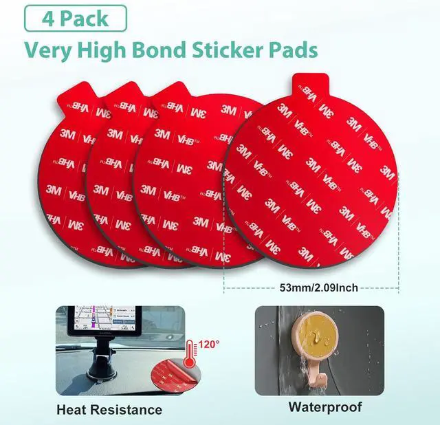 What You Get - Heavy duty and high-strength pop-tech single both side 4 pieces small tiny 53mm/ 2.1 inch circle replacement stickers extra sticky replacement part backed things art for suction cup base with no more than 70mm stayed attached to the car dash and only 4 pack wipe pads. Great adhesive strength sticking power with correct size for larger applications and become a near permanent fixture.