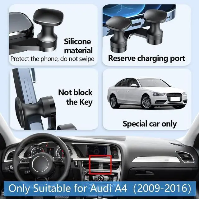 Special Mobile Phone Holder: Only compatible with 2009-2016 Audi A4 A5 S4 S4 RS4 RS5 SPECIAL CAR BASE DESIGN, only for a specific model development. Please confirm the model and year of your car before placing the order. Or contact us and send a picture of the central control of your car, and we will help you pick the one.