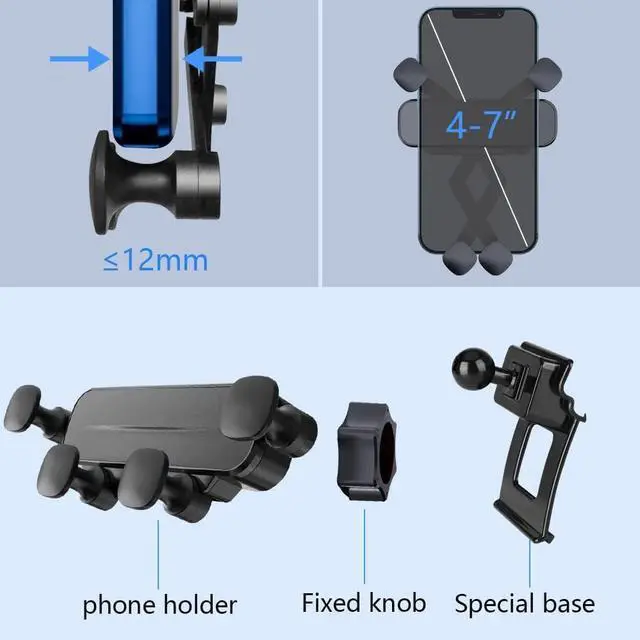 Great CompatibilityThis universal car cell phone holder will firmly hold all the smart phones (4-7in) even with thicker case (12mm) compatible with iPhone 13 12 pro max/ 11 pro max/XR/X/8/7/6/5, Note 20 10/ Galaxy S10+/ S9/ S8 /S7 /S6 and more.