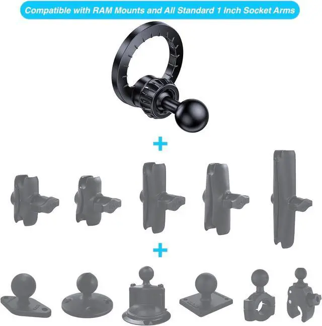 [360 Degree Rotation] This magnetic car holder mount with B size 1 ball component can attach to RAM mounts suction cup base, and this magnetic cell phone holder base with 1" ball for MagSafe gives you the best viewing angle and allows you to switch to any direction quickly.