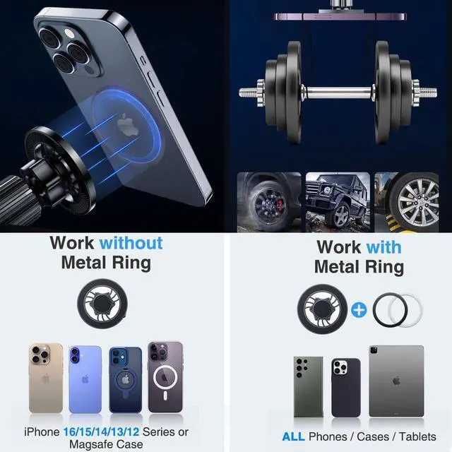 [STRONG MAGNETIC MagSafe Car Mount] - with Metal Ring, This powerful magnetic phone holder can create a powerful attraction that firmly supports your device while allowing you to drive without distraction. it easily and securely holds your phone through bumps, sharp turns or even sudden stops, no worrying of dropping your phone.