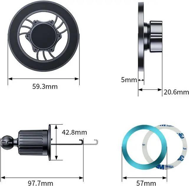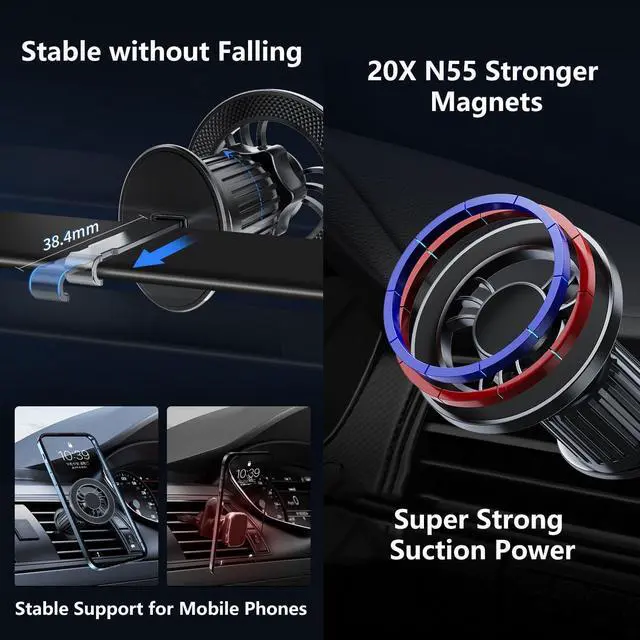 [2 in 1 fits Magsafe Magnetic Cell Phone Holder for Car] - 2 base suction cup/vent mount base magnetic car mount for flexible placement. Horizontal and vertical vents, dashboards and tables, all places work perfectly. Suitable for all cars, pickups, suv's, cabs, etc. With extension arm and free angle adjustment, they can create a comfortable ambience, or a vivid, bright and refreshing driving atmosphere - which suits your car best.