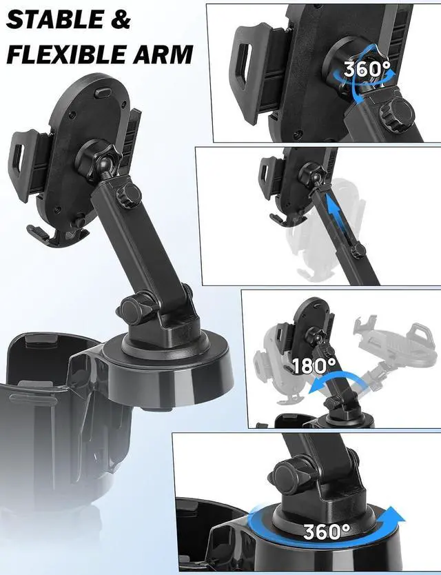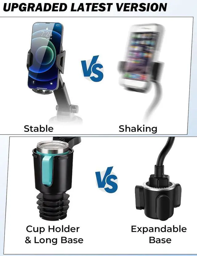 Ideal for Phone & Bottles: Inspired from the original car phone holder mount, you not only can place the cellphone on our new cup phone holder, but also your big bottle in the cup holder, no more embarrassing situation looking for cellphone and cups