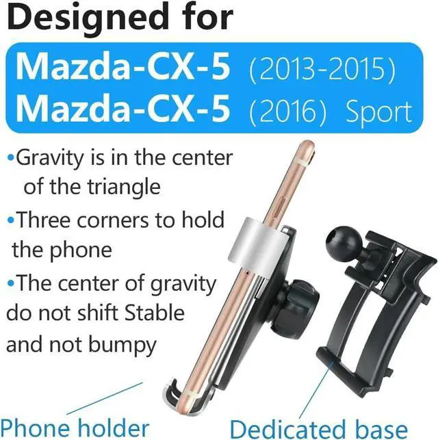 Only compatible with: Mazda CX-5 2013 2014 2015 and Mazda CX-5 2016 Sport. SPECIAL CAR BASE DESIGN, only for a specific model development. The most appropriate location, make sure the phone is in the best viewing Angle.