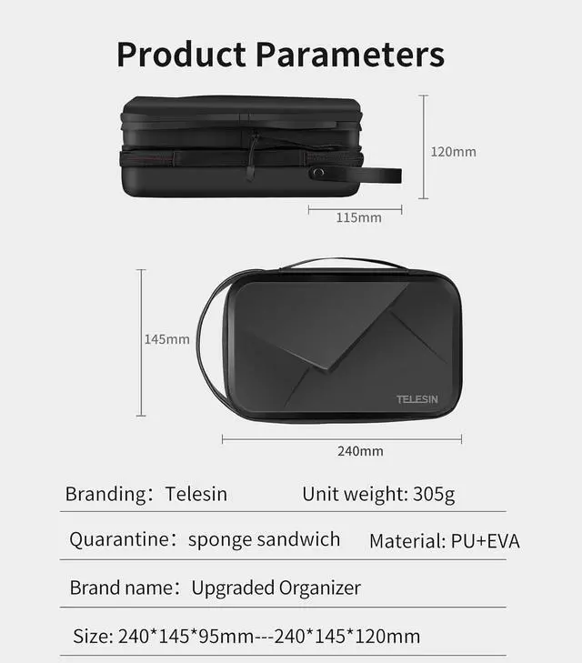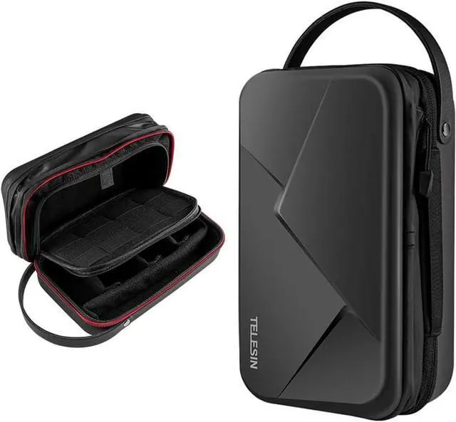 Compatibility and Capacity TELESIN Hard PU Storage Carry Case specially designed for GoPro Max Mini Hero 13 12 11 10 9 8 7 6 5 4, D-J-I Osmo Action 3 4 5, Osmo Pocket 3, AKASO, Insta 360 One R RS X2 X3 X4 X5 go2 go3 Ace Pro, Insta 360 One R Twin Edition and more other small action cameras and accessories bundles like selfie stick, camera mounts, batteries, charger, housing case, lens filter, charger cable, ect...