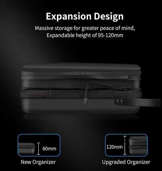 Larger Capacity Fashion Design This upgraded bag size is 240x145x95mm/9.45"x5.7"x3.74", the height can be expanded from 95mm to 120mm. Special and elegant design makes this carry case outstanding from others normal cases in the market. Newly and upgraded with rhombus on the surface and soft velvet inner divider, make it looks more fashion.