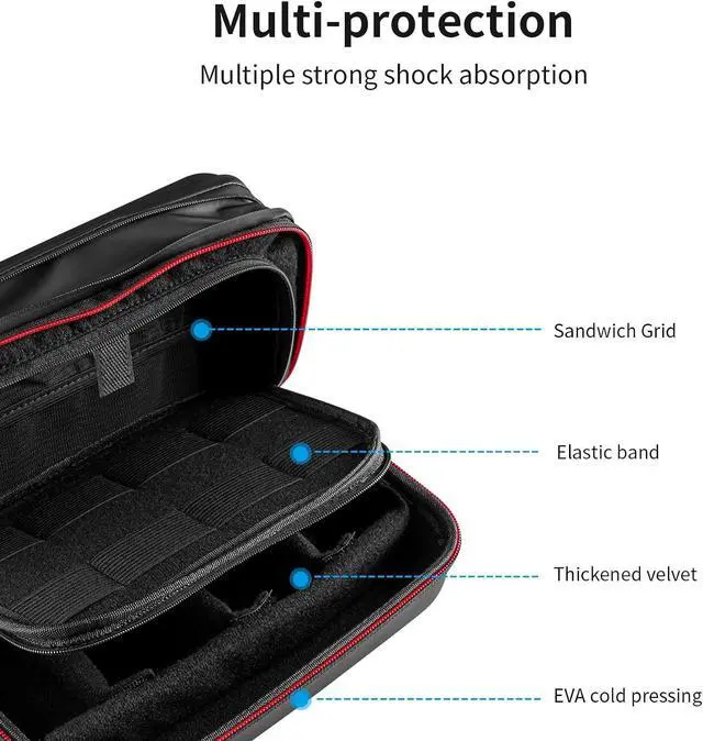 Great Protection and Waterproof High quality waterproof PU surface,waterproof and damp-proof. 3-Layer soft velvet inner divider to hold your items on all sides.Double-deck elastic mesh pocket provides superior storage space for cables and other accessories.